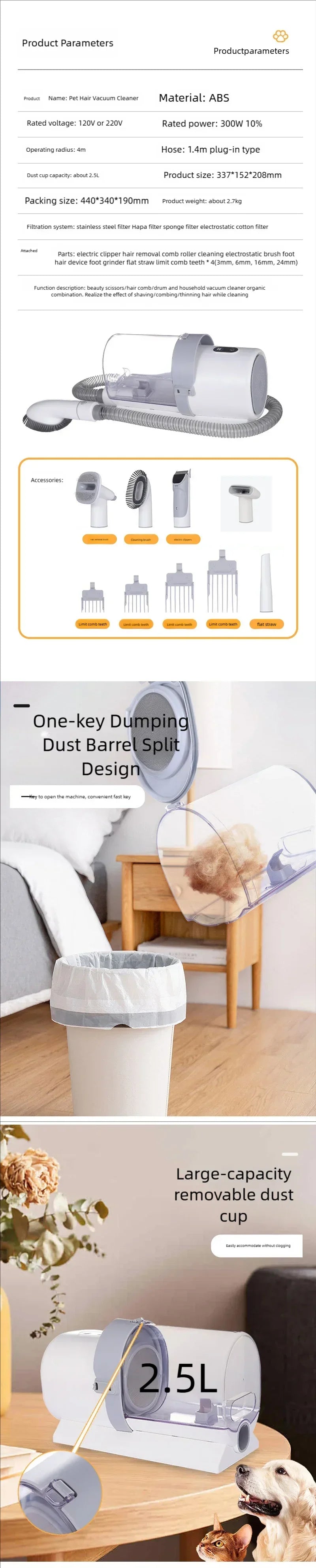 Dog Grooming Kit for Pet Include 4 Hair Clipper Combs 2.5L Vacuum Cleaner and 5 Pet Grooming Tools for Shedding