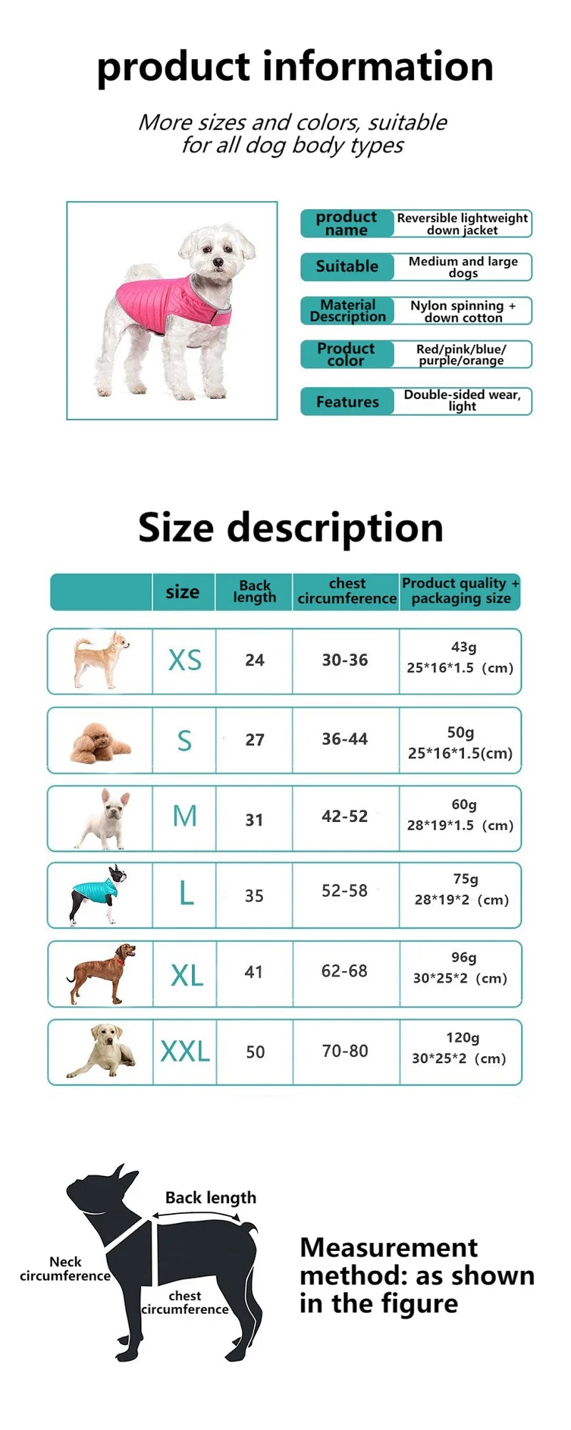 Dog Winter Clothes For Small Dogs Light Down Double-Sided Cotton-Padded Jacket Pet Clothing Coat Suit Ove